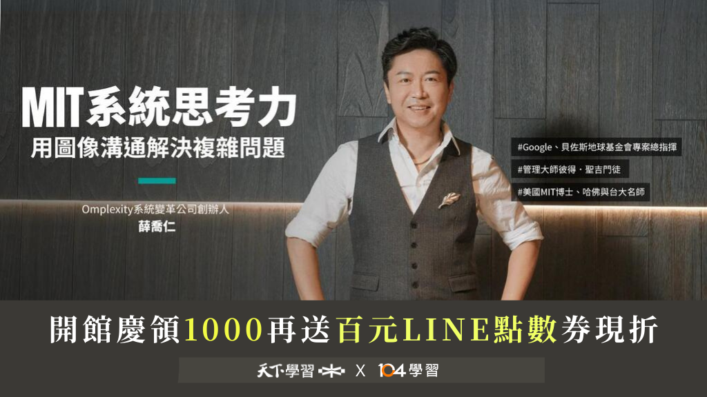 MIT系統思考力:用圖像溝通解決複雜問題 在快速變動的職場裡,舊方法往往只能治標,卻難以治本,這堂課將訓練你專注於問題核心,更新你的思維格局,培養全局視野,跳脫思考盲區,真正「見樹又見林」,找到突破困境的根本解方,讓你在挑戰中持續創造新成功!
